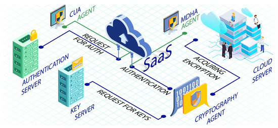 In times of critical sensitivity and decision making, users face difficulty accessing authentic information that is kept encrypted and digitally signed, even after proving its authenticity. Moreover, if an adversary hijacks the IMEI of a patient’s cell phone, it can clone to its own unsafe device and can get access to the network. Thus the scheme is vulnerable to known-key attacks and theft attacks. A user authentication scheme for cloud computing environments using different techniques (i.e., HE-RSA algorithm, AES-192 or AES-256 algorithm, and zero knowledge proof (ZKP) Diffie–Hellman) is proposed in [88]. In this framework, the authors have introduced many agents and a cloud-based SaaS program to validate the authentication mechanism for unregistered devices. In their proposed model, the following entities were used:
