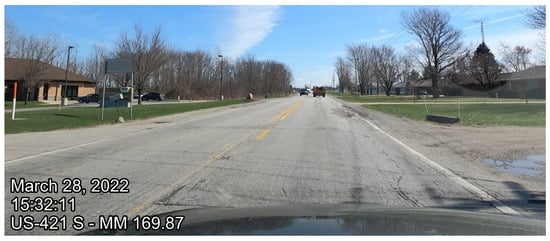 Current means of evaluation of pavement conditions often include estimation of the International Roughness Index (IRI) with an inertial profiler. IRI is widely employed due to its stability overtime and has been applied around the world [32,33,34]. IRI is less subjective than other pavement performance indicators as it is calculated from the road profile. This method requires the agency to annually inspect all their roadways to determine maintenance procedures and budgets. Statewide evaluation, prioritization of segments, and maintenance is difficult to achieve within one season [7]. This costly procedure often results in agencies only conducting detailed data collection on their busiest roads, with lower-volume roads receiving less attention (Figure 2).