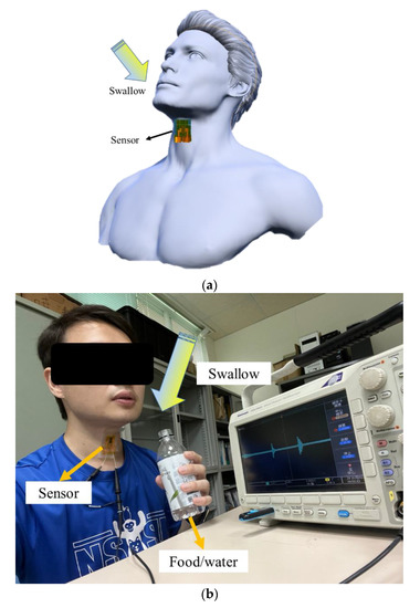 - Kurihara, Y.; Kaburagi, T.; Kumagai, S.; Matsumoto, T. Development of Swallowing-Movement-Sensing Device and Swallowing-State-Estimation System. IEEE Sens. J. 2019, 19, 3532–3542. [Google Scholar] [CrossRef]