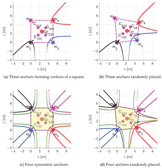 - Compagnoni, M.; Notari, R. TDOA-based Localization in Two Dimensions: The Bifurcation Curve. Fundam. Inform. 2014, 135, 199–210. [Google Scholar] [CrossRef]