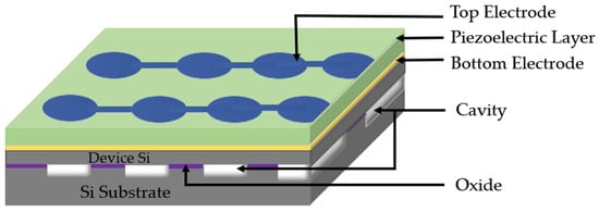 Three-dimensional schematic of a PMUT array based on cavity SOI.