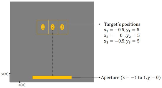 As demonstrated in Figure 20a, the measured scene and its size are exhibited. The array beamwidth can be calculated as follows: