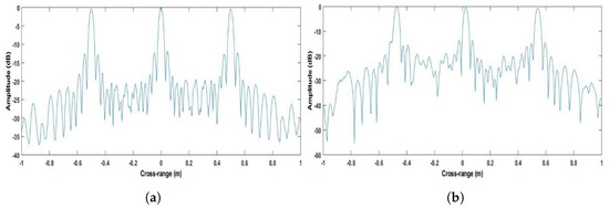Cross-section of Stripmap SAR in the cross-range dimension for (a) simulation and (b) experiment.