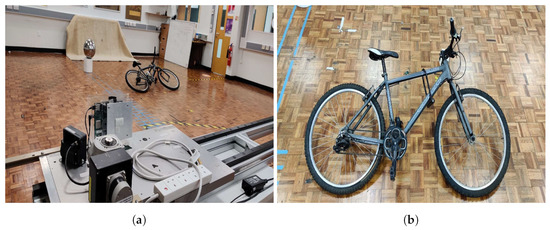The bicycle, which is our target in this experiment, as shown in Figure 14, was placed in the experiment area at an angle symmetric with respect to the total length. The distance to the closest point of the bike to the linear positioner is 3.2 m.
