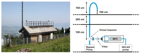 Left: Rigi measurement station as seen from the southeast. Right: schematic of the inlet and sampling system.
