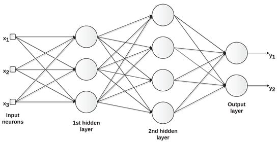 In multilayer feed-forward networks, the network comprises one or more hidden layers, whose corresponding neurons are called hidden neurons (Figure 9). They are given this name because the neurons in the hidden layers are not directly visible from either the network’s input or output. A multilayer perceptron (MLP) is a typical multilayer feed-forward network.