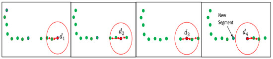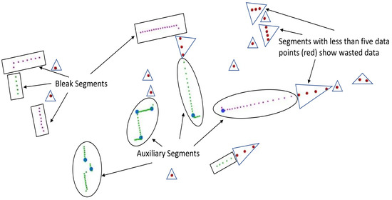 Parameters and were selected for scan ranges between and . Radius is taken as the varying euclidean distance. The SVED approach may produce both auxiliary and bleak segments [3], as shown in Figure 5.