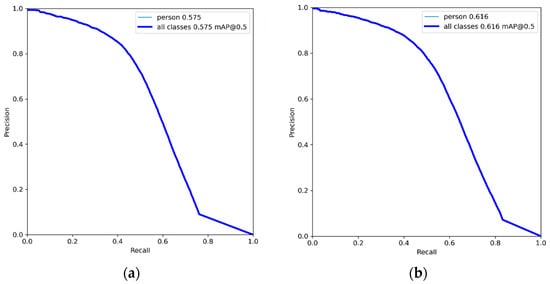 YOLOv5 (a) vs. YOLOv5s-improved (b) method Precision–Recall curves on the validation set.