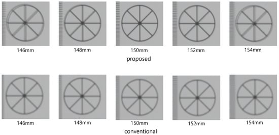 As shown in Figure 4 and Equations (5) and (6), the distance between the sensor and the scene () is the main factor for calculating the distances (). In short, as the distance between the 3D object and the pickup plane decrease, the acquisition area per pixel becomes smaller. Therefore, it can obtain more precise information.