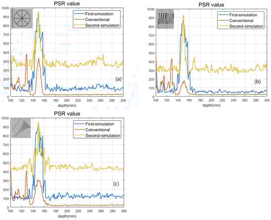 PSR values for (a) circle sample, (b) line sample, and (c) diagonal sample.
