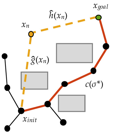 - Hart, P.E.; Nilsson, N.J.; Raphael, B. A formal basis for the heuristic determination of minimum cost paths. IEEE Trans. Syst. Sci. Cybern. 1968, 4, 100–107. [Google Scholar] [CrossRef]