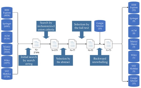 Six common databases were adopted, including SAE Mobilus, commonly used in the automotive industry. Additionally, the latest research work on security is generally presented at security-related conferences, such as Black Hat, Defcon, etc. Therefore, Google Scholar was used as a supplement in the backward snowballing phase. Table 1 shows the databases for the search.