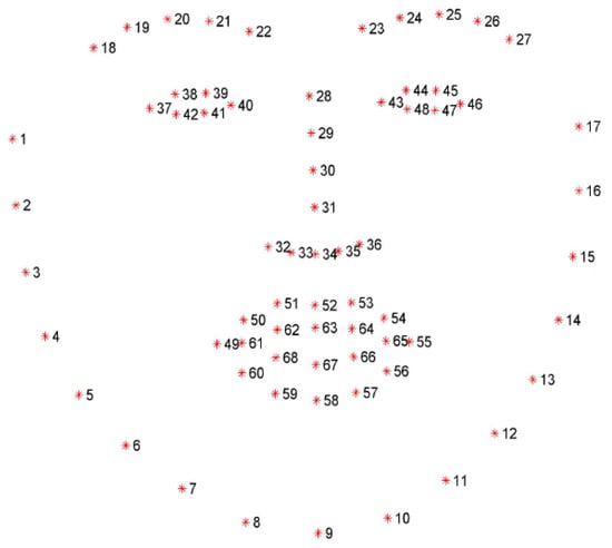 - Sagonas, C.; Tzimiropoulos, G.; Zafeiriou, S.; Pantic, M. 300 faces in-the-wild challenge: The first facial landmark localization challenge. In Proceedings of the IEEE International Conference on Computer Vision Workshop (ICCV Workshops), Sydney, Australia, 2–8 December 2013; pp. 397–403. [Google Scholar]