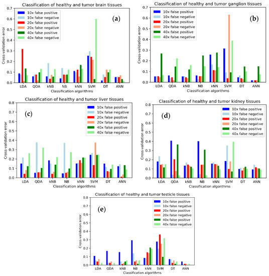 - Fanjul-Vélez, F.; Pampín-Suárez, S.; Arce-Diego, J.L. Application of Classification Algorithms to Diffuse Reflectance Spectroscopy Measurements for Ex Vivo Characterization of Biological Tissues. Entropy 2020, 22, 736. [Google Scholar] [CrossRef]
