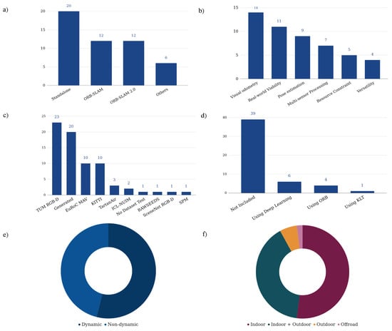 Other surveys that studied the latest VSLAM approaches focused only on a particular topic or trend. For instance, Duan et al. [] investigated the progress of deep learning in visual SLAM systems for transportation robotics. The authors summarized the advantages and drawbacks of utilizing various deep learning-based methods in VO and loop closure detection tasks in their paper. The significant advantage of using deep learning approaches in VSLAMs is the accurate feature extraction in pose estimation and the overall performance calculation. In another work in the same field, Arshad and Kim [] focused on the impact of deep learning algorithms in loop closure detection using visual data. They reviewed various VSLAM papers and analyzed the long-term autonomy of robots in different conditions. Singandhupe and La [] reviewed the impact of VO and VSLAM in driverless vehicles. They collected approaches that have been evaluated on the KITTI dataset, enabling them to have a brief description of the advantages and demerits of each system. Cheng et al. [] reviewed the VSLAM-based autonomous driving systems and raised the future development trends of such systems in a similar manuscript. Some other researchers surveyed VSLAM works with the ability to work in real-world conditions. For instance, Saputra et al. [] targeted the variations of VSLAM techniques operating in dynamic and rough environments and discussed the reconstruction, segmentation, tracking, and parallel execution of threads problems.