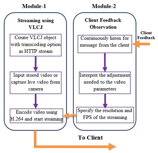 - The second module deals with listening to client feedback messages to adjust the video stream parameter, which includes resolution and frame rate.