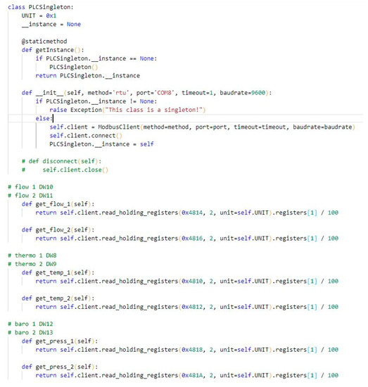 In order to monitor the parameters, the application needs to obtain information from the sensors. Therefore, by connecting the PLC to the personal computer, it is possible to read the values that appear in the registers. These data are distributed throughout the entire code wherever it is necessary (Figure 8).