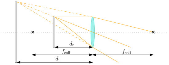 Note that because of the collimation, the distance between the camera and the collimating lens is not a design parameter that depends on the collimator focal length. This parameter is important for determining the diameter of the collimating lens [13]. To avoid the camera observing outside of the collimating lens, it must hold that [13]: