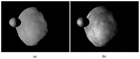 The second application gives a glance at the validation and verification of the Milani’s IP and is reported to show the applicability of the downstream compensation procedure. This procedure, as explained in Section 5.4, is preferred when it is not possible to warp the LoSes during the rendering process. In this scenario, the images are generated using Blender as the core rendering engine wrapped in a procedural image generator for small-body application [39]. This study was first briefly reported on in Panicucci et al. [7] and Piccolo et al. [31] in more detail.