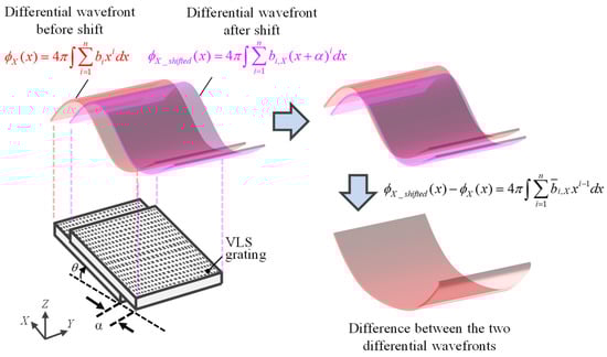 where bi,X (i = 1, 2, ···, n) correspond to the X-directional VLS parameters of the VLS grating. Consequently, by taking the difference between the differential phase outputs before and after the lateral shift, the following equation can be obtained: