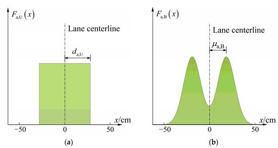 where fa(x) is the original PDF of the transverse distribution of autonomous vehicles, fa(x)~N(μa, ), in which μa and σa are the mean and standard deviation of fa(x), respectively, and are affected by the robustness of the vehicle control system and the effect of vehicle wander.