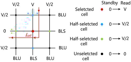 - Chen, A. Analysis of Partial Bias Schemes for the Writing of Crossbar Memory Arrays. IEEE Trans. Electron Devices 2015, 62, 2845–2849. [Google Scholar] [CrossRef]