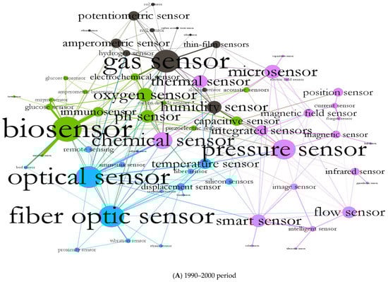 Table 3 shows new items of sensors that emerged in the network after the 1990–2000 period and started an evolutionary growth of publications. In particular, new items about sensors increased from 137 in 2001–2010 to 374 in the 2011–2020 period. This finding reveals that sensor research has a significant and continuous evolution in science and technology.