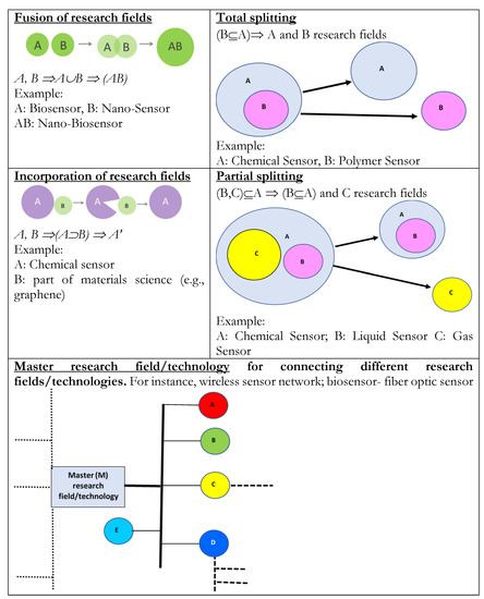 - Total fusion of research fields is when two or more research fields (e.g., A and B) merge and create a new one (i.e., AB) that evolves as a whole system. For instance, in sensor research, nano-bio sensor is a fusion of nanosensor and biosensor. In particular, the combination of these two technologies and research fields created a new potential field.