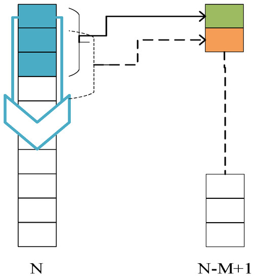 In Figure 4, we suppose the length of input layer is N, the size of the convolution kernel is M, and the size of moving step is 1, then the length after convolution is N − M + 1. In the convolution layer, the one-dimensional forward propagation can be defined by Equation (5) as follows