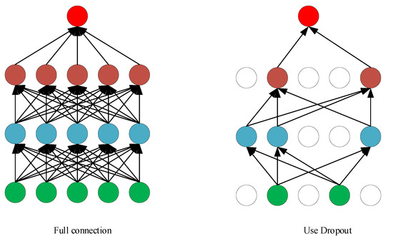 The main idea of Dropout is to randomly lose every neuron that propagates forward with a probability P when training the neural network, this probability P obeys the Bernoulli distribution. The model obtained in this way has stronger generalization ability, because it is not restricted by a certain local feature. Its principle is shown in Figure 6.