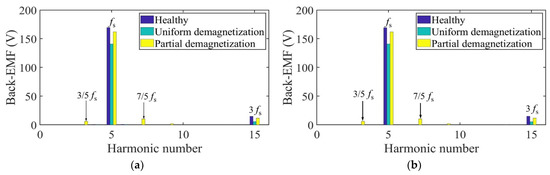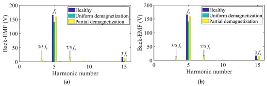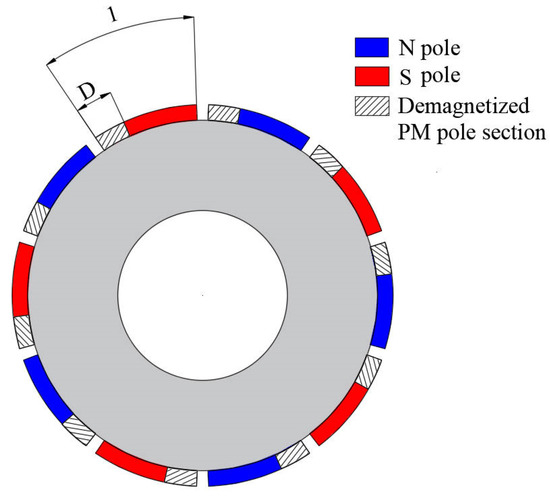 - Gyftakis, K.; Rasid, S.; Skarmoutsos, G.; Mueller, M. The Demagnetization Harmonics Generation Mechanism in Permanent Magnet Machines with Concentrated Windings. IEEE Trans. Energy Convers. 2021, 36, 2934–2944. [Google Scholar] [CrossRef]