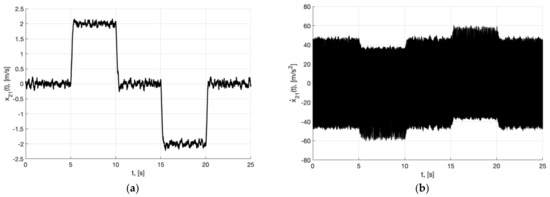 In Experiment 3, the generator (40) still receives a noisy signal . Here, we introduce an additional block filter only on the second derivative before it enters control law (37):