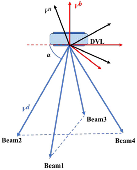 In [21], a DVL beam processing strategy is introduced, which includes data anomaly detection and the virtual beam (VB) method. As shown in Figure 3, the method assumes that the DVL beam has the following characteristics: