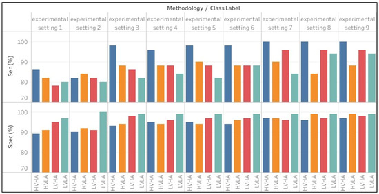 Figure 5 shows performance of proposed experimental settings in terms of accuracy. It can be clearly seen that system performs better with ensemble classifier. Figure 6 shows overview of sensitivity and specificity of proposed experimental settings against each class label.