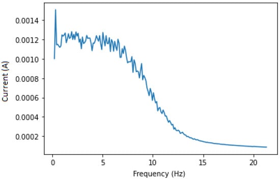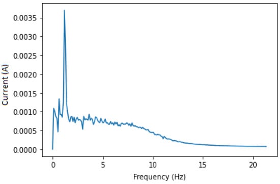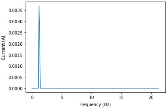 The application of a Fourier transform on one of the currents will give a representation in the spectral domain. The most dominant frequencies correspond to the supply frequency 50 Hz and its harmonics (i.e., 250 Hz), as shown in Figure 1. As said previously, the fault components are modulated, and their carriers are the supply frequency and its odd harmonics. By analysing the spectrum of different samples that each represent a different severity, we observed that the components on the left of the carrier are not equal in amplitude to the ones on the right. It would also be interesting to take into consideration the whole sub band of frequencies corresponding to 5% of to ensure picking all fault information that might move due to inaccuracy in calculating the slip: 5% was chosen because it gave the best performance in the previous studies [20]. It can be observed that the amplitude of the component increases proportionally with the severity of the damage and that the component does not exist in the healthy state. The second observation should be enough for a diagnosis, and the first one can be used to add more diversity to the training data for the CNN that we will discuss after.