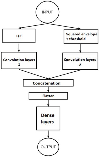 Data processing and rehabilitation is an important task that directly impacts the performance of a deep learning model. Some of the extracted features would be irrelevant to the fault. A proposed solution is to pre-process the signals in order to extract the fault characteristic frequencies as mentioned in Section 3.1 and Section 3.2. Samples used to train the CNN are considered as an array that contains only fault-relevant information. By feeding this input structure into the CNN, the feature extraction focuses only on fault-relevant information, other than noise and normal functioning frequencies that can lead the learning process of the model to confuse the classification and produce errors that are not acceptable in the industrial domain. This model is usually referred to as CNNS.