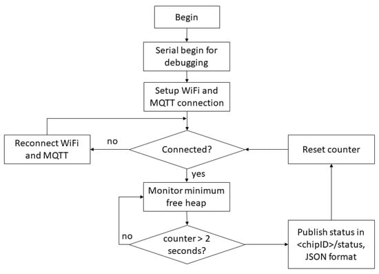 Another contribution is related to the applicability of the proposed method, considering that the proof of concept is open source for facilitated replication, and the communication is based on the open source standard MQTT [26]. The scripts for ESP32 and ESP8266 modules are, therefore, compatible with any cloud provider that implements the MQTT protocol, so our approach is compatible with any cloud back-end, minimizing the vendor lock-in problem. The PubSubClient library used for the device MQTT connection is also open source, unlike the Amazon Web Services (AWS) library only compatible with AWS back-end.