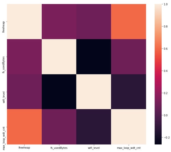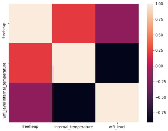 The correlation matrix of the Figure 17 shows the negative correlation between wifi_level and freeheap, and between wifi_level and fs_usedbytes.