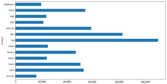 The clustering results are summarized in Table 3. The firmware versions ArCond2, R4x2, RM6, RM8, and TV4x2 presented the worst status results, resulting from bad Wi-Fi signal and more integrated functionalities that may compromise performance. The firmware versions R4x2o, R4x4ir5, R4x4o, RM, RM1, RM1t10o, and WifiModem presented the best results, resulting from specialized functionality or better location for Wi-Fi level. The R4x4ir firmware version presented an average status.