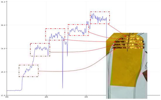 The graph depicted in Figure 12 shows an incremental increase when each stripe is covered by a size 20–23 foot phantom. Although this proved that the striped design works, this test is not an overall indication of the final design, as the final prototype must be made of fabric and not paper and copper tape.