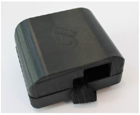 3D-printed enclosure with elastic straps to fit child’s ankle. (a) Front, (b) Back.