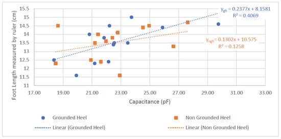 3.2.2. Foot-Length and Capacitance Relationship Results