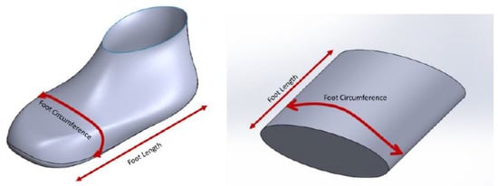 For these results, the circumference of the foot was taken from the widest part of the foot. An assumption was made that the volume of the foot has approximately the section of an ellipse. The volume of the foot is assumed to have a cylindrical ellipse shape; the semi-minor axis is assumed to be one-fourth the semi-major axis.