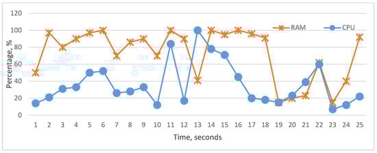 As explained in Section 2, in our testbed computer we simultaneously ran multiple applications and monitored the objects mentioned below and their aspects, then collected the data described in Table 1. Monitoring CPU directly measures the CPU workload and utilization. Due to the dependence of multi-processor systems on such metrics, they are particularly crucial. That is why it is necessary to regularly examine the system for active and idle processors, as well as which ones are capable of completing the pending task. The “Memory” section displays the current state of memory, we monitored “Pages/sec” to obtain data about memory utilization. The way a cache behaves affects a computer system’s overall performance. One can deliberately configure the system if the real behavior of the system is known. The communication between system components is centered on the buses. An indicator of system component activity is bus activity. We can infer information about bus protocol problems, the kind and volume of messages in the bus, and system bottlenecks by measuring the bus throughput. More effective indicators for obtaining storage utilization and workload are monitored, and these are “Average transfer rate”, “Disk time”, and “Disk queue length” [].