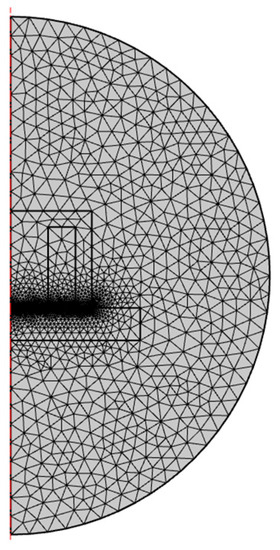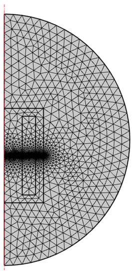 The electromagnet connected to the 12 V power supply has a stable current of 0.6 A during operation. Additional parameters used in the simulation are shown in Table 2. Mesh used in modeling is characterized in Table 3 and depicted in Figure 1.