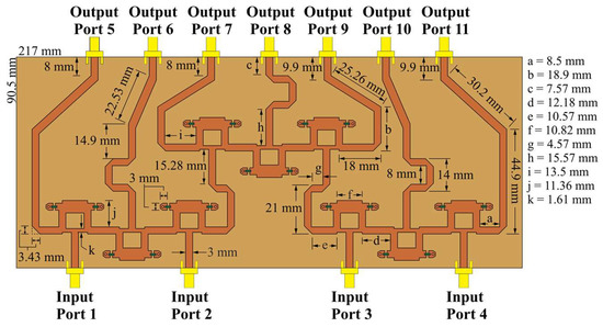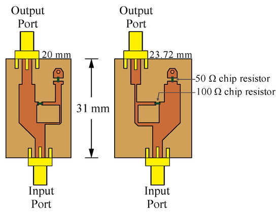 - Parad, L.I.; Moynihan, R.L. Split-tee power divider. IEEE Trans. Microw. Theory Technol. 1965, 13, 91–95. [Google Scholar] [CrossRef]