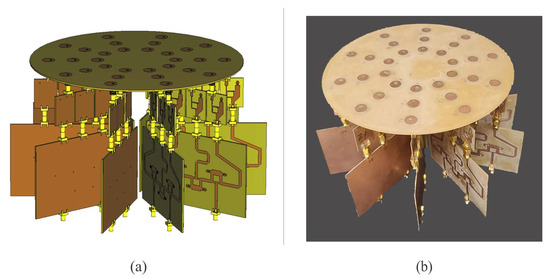 - Panduro, M.A.; del Rio-Bocio, C. Simplifying the feeding network for multi-beam circular antenna arrays by using CORPS. Prog. Electromagn. Res. Lett. 2011, 21, 119–128. [Google Scholar] [CrossRef][Green Version]
