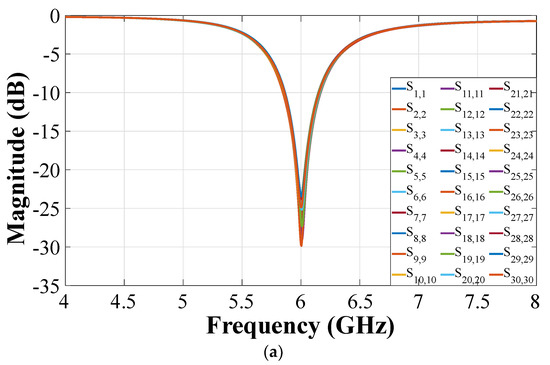 | [30] | Yes | 18 30 | Not specif. | 0% | Not specified | Uniform | −36 (Array factor) −32.88 |