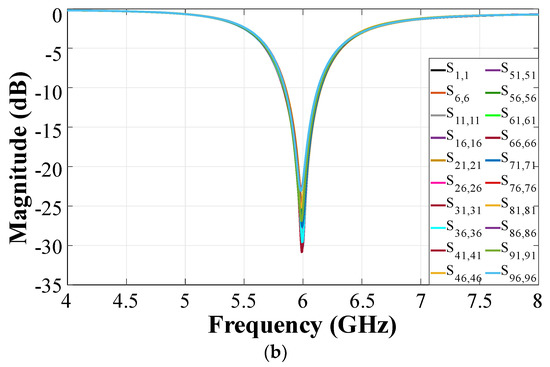 | [29] | Yes | 201 142 134 | Not specif. | 0% | Not specified | Uniform | −29.03 −28 (Array factor) −29.07 |