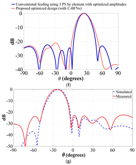 | This work: Conf. 1 | Yes | 30 | 20 | 33% | (θ) Scan loss = 0.5 dB | C-BFN | −24 (sim.), −22.5 (Measured) |